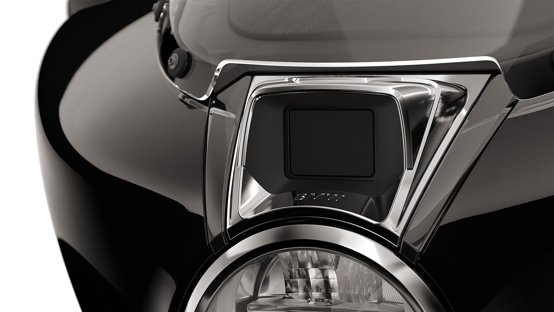 La característica flyline se extiende desde el imponente carenado delantero, pasando por el depósito de 24 litros con forma de lágrima y el asiento alargado, hasta la parte trasera que incluye maletas y faros traseros. Siguiendo la línea de BMW Motorrad, el diseño es coherente y sencillo. A su vez, se aprovecha la aerodinámica característica de la bagger tradicional.